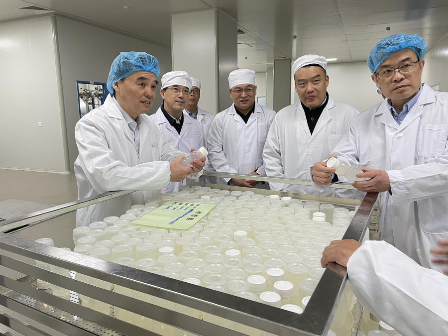 在江蘇西宏生物醫藥有限公司,王越副局長一行深入企業生產一線,先后參觀了企業生產車間、原料庫、化驗室、成品庫等重點區域,著重檢查生產工藝流程和質量安全管理規范。強調生產企業要落實食品安全主體責任,開展質量管理體系風險自查,加強生產質量全過程控制,持續保持良好生產規范。